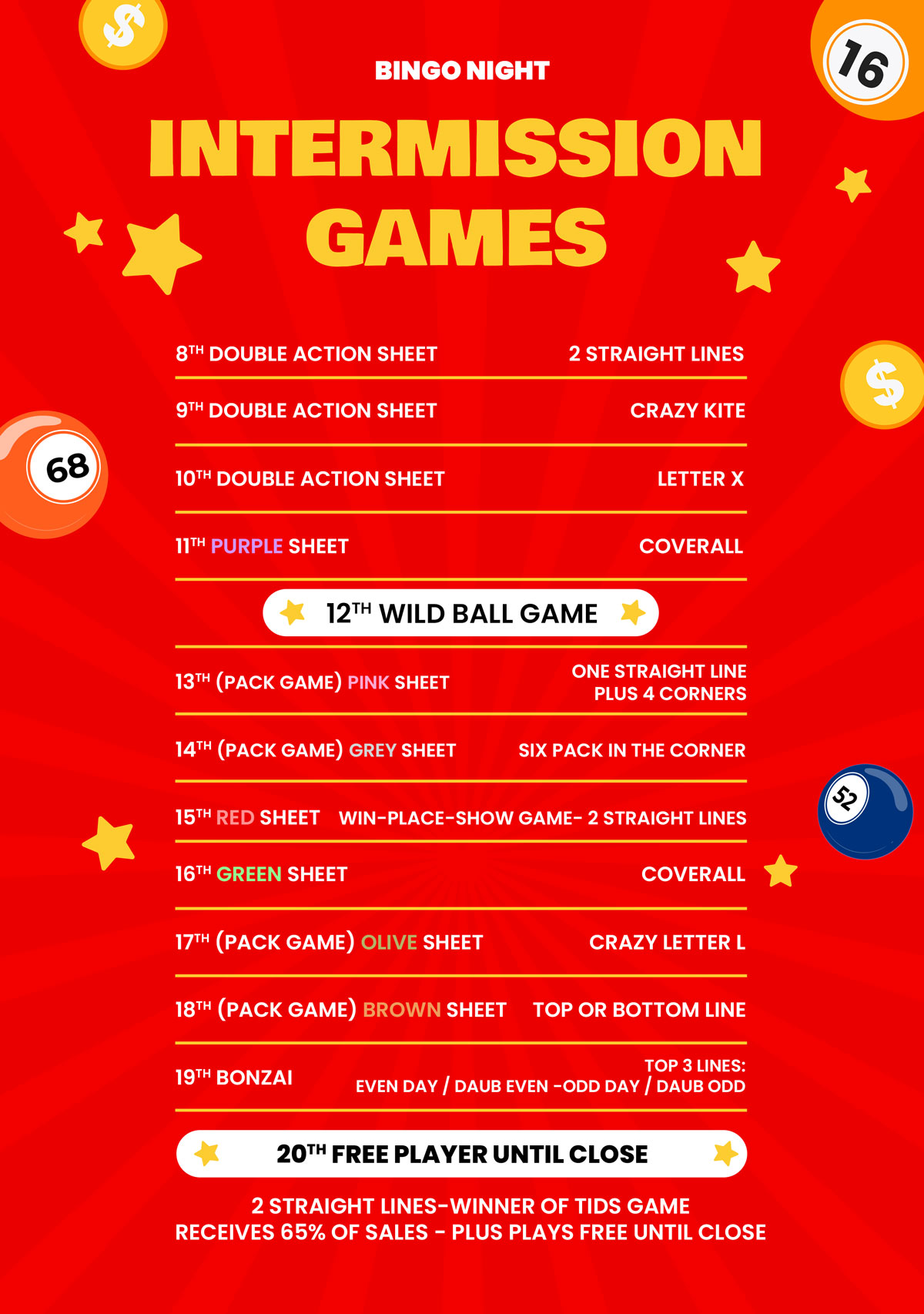 - Must yell BINGO LOUD ENOUGH TO STOP THE CALLER.